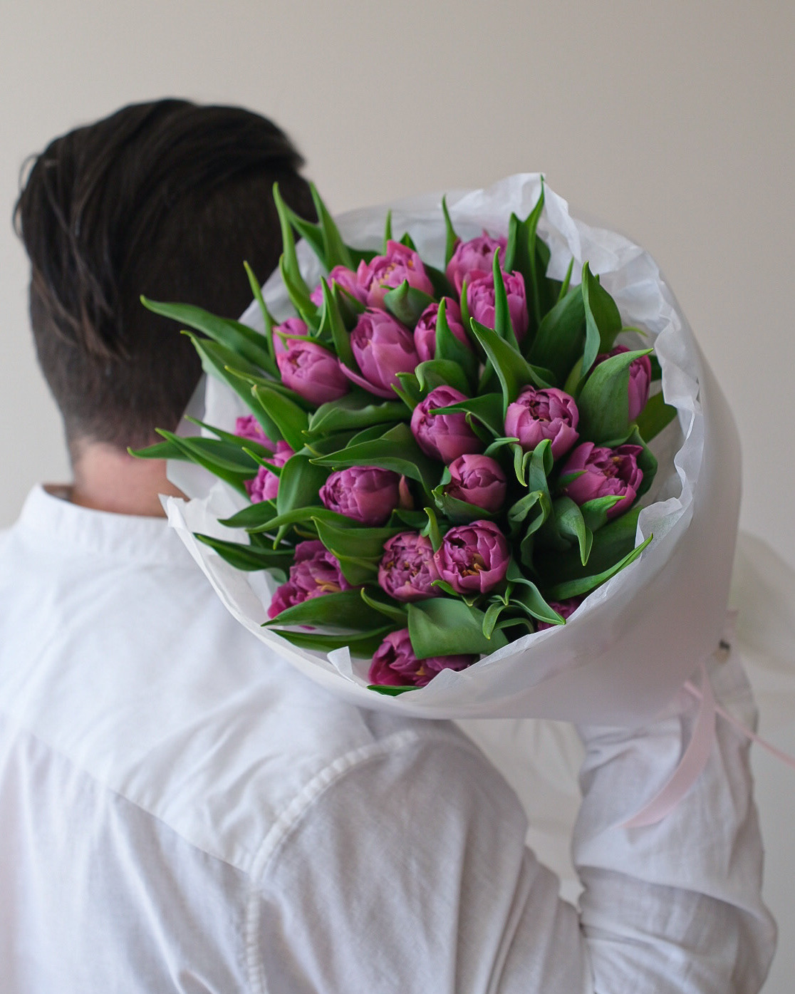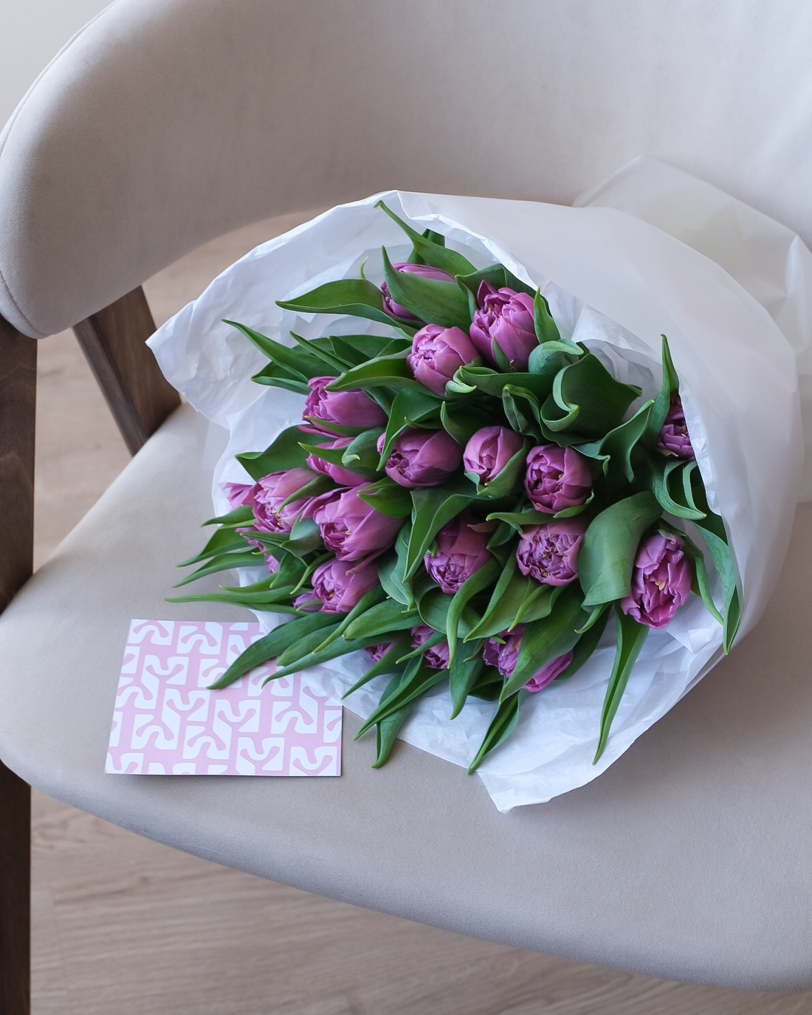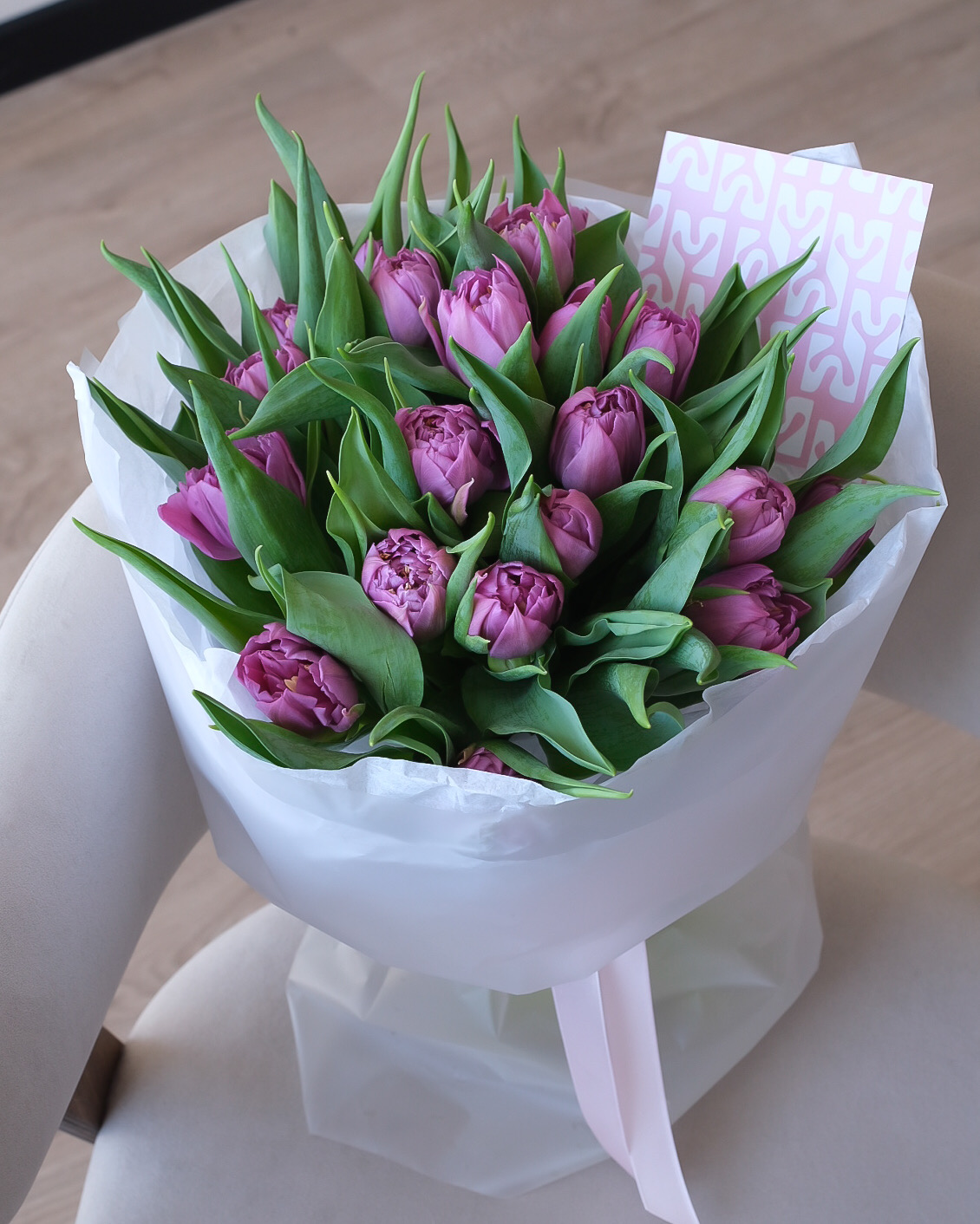 Весенний букет из хрустящий пионовидных тюльпанов нежного сиреневого оттенка 🫶🏻