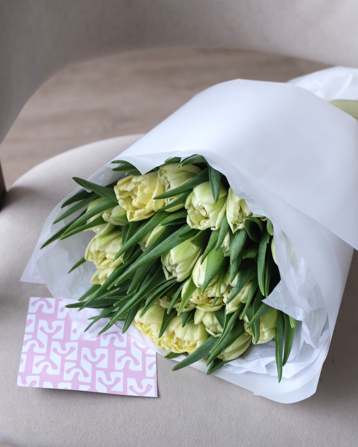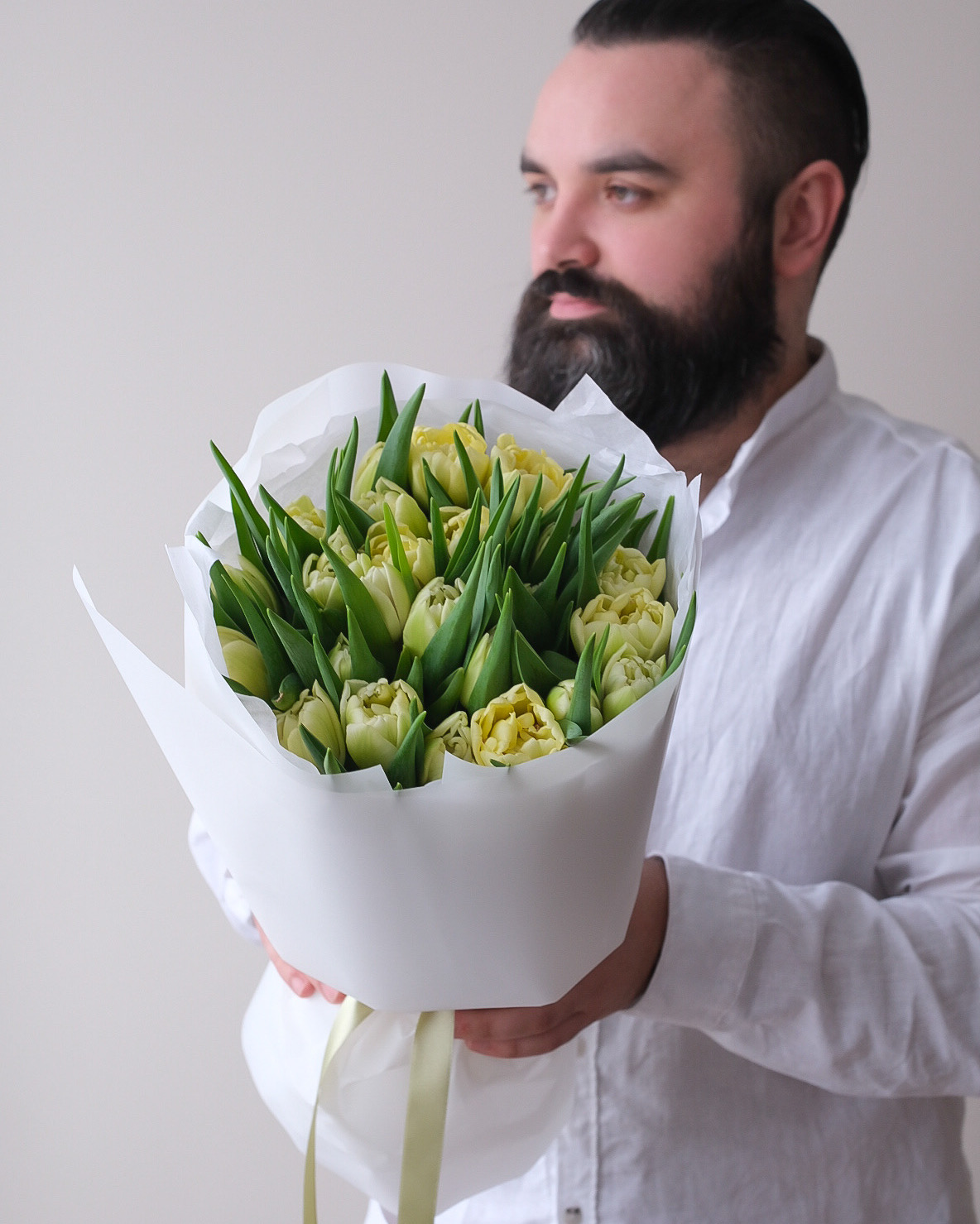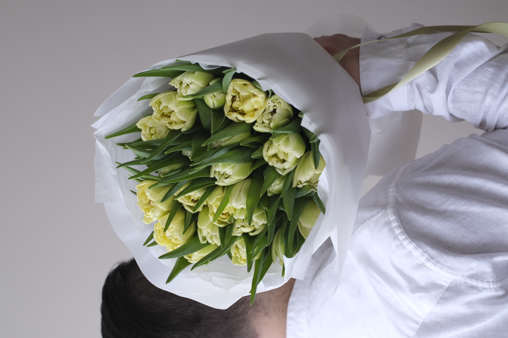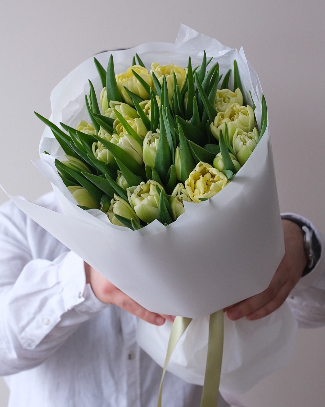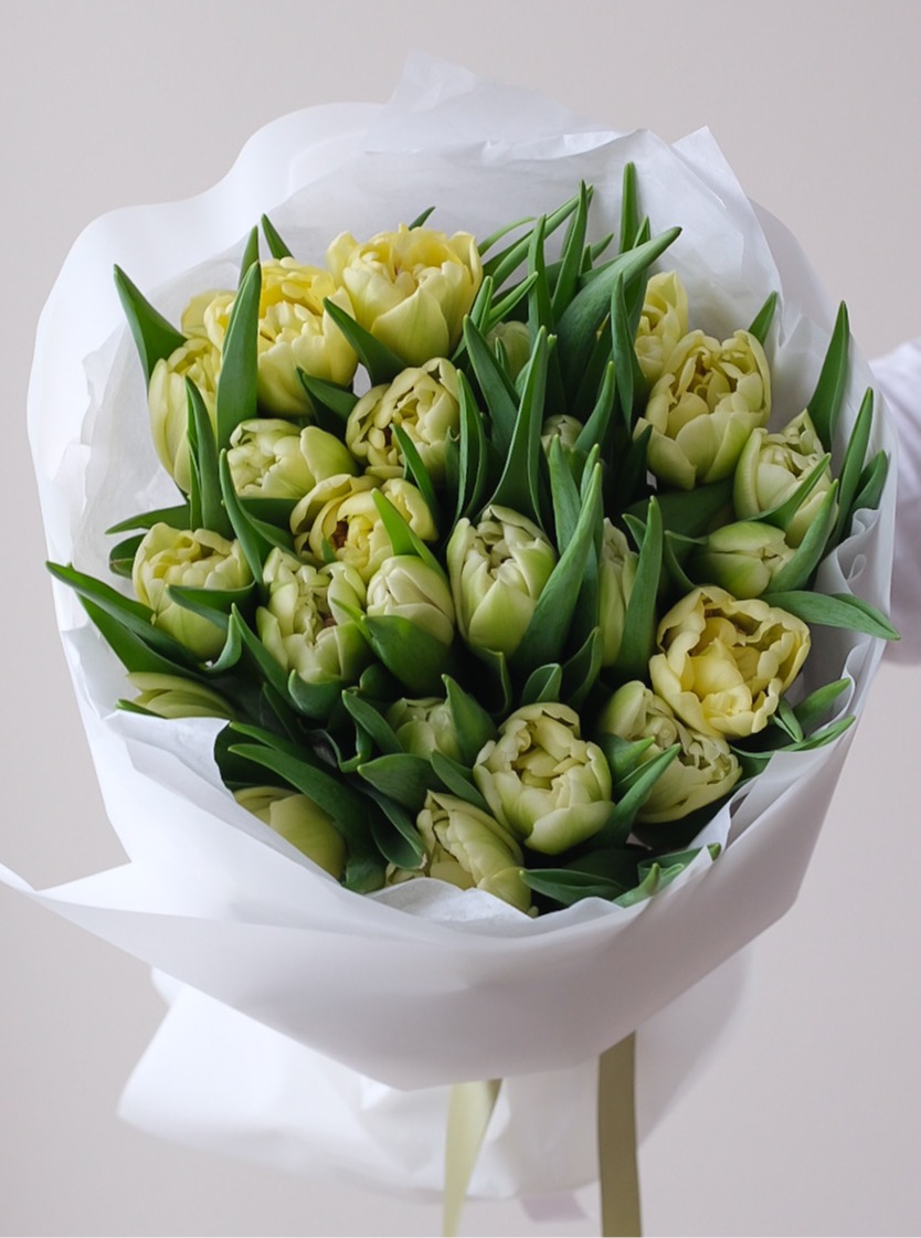 Букет хрустящий кремово-белых пионовидных тюльпанов Авангард с очень красивым бутоном 🌱